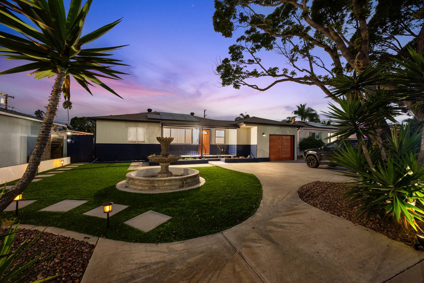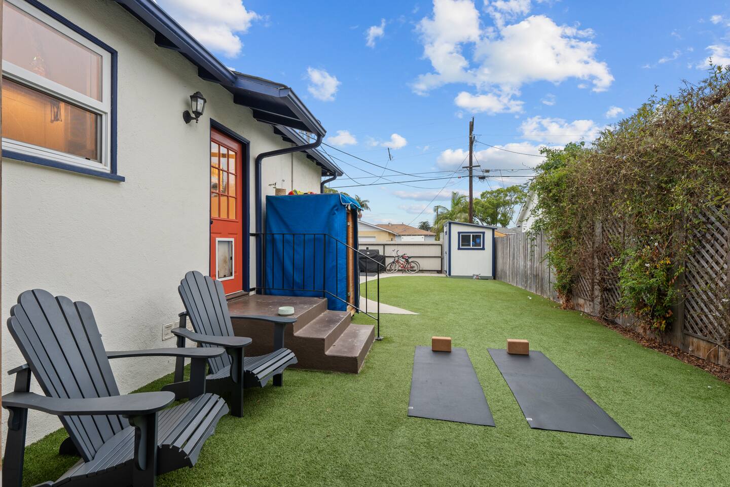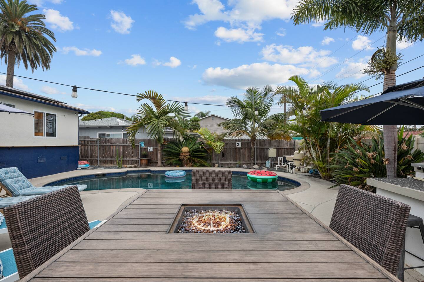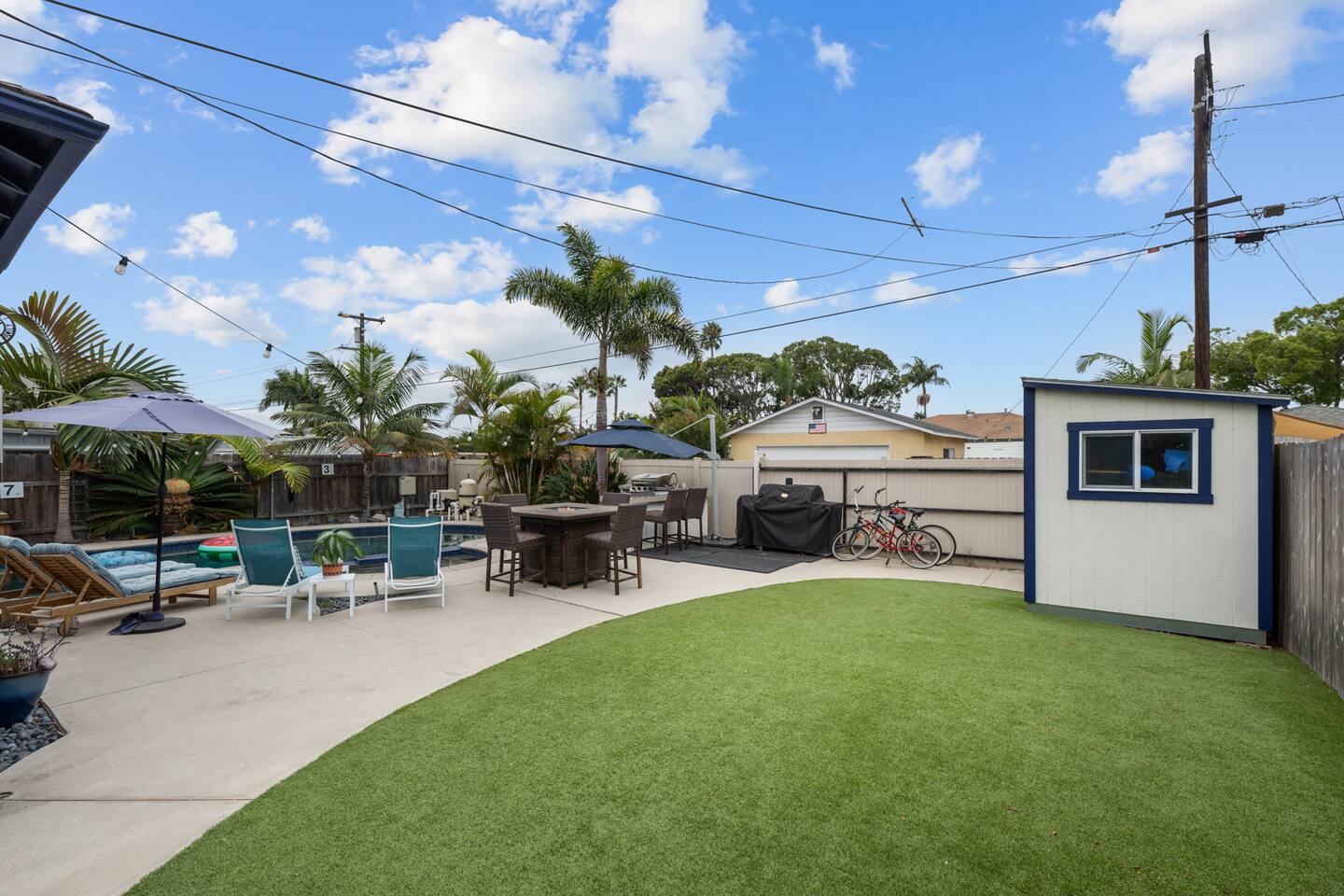 Our space is perfect for you and your group to indulge in our beautiful indoor & outdoor living spaces. It is loaded with amazing amenities that will facilitate more connection and more fun for your memorable California escape. Outside our home you will have access to: - Beautiful private pool area with 2 umbrellas surrounded by palm trees - 4 chaise loungers + additional chairs to relax by the pool and fire pit - Jacuzzi/Hot Tub - Outdoor dining table w/ built in fire pit - Outdoor kitchen with fridge, sink, grill and smoker - Functional fitness gym in the garage (2 barbells, rowing machine, yoga mats, squat rack, bench, dumbbells, and more) - 2 Person Sauna - Locker w/ beach chairs, towels, sand umbrella, bags, and more to allow you to enjoy the beach comfortably Inside our home, the space is cozy with tasteful designs that make you feel right at home. You will sleep soundly on our extremely comfortable mattresses. You'll have access to: - Master suite with a massive California king bed attached to a master bath with dual vanities. - A queen bed, mini fridge, & a large workstation (a mouse and TV monitor). It has a convenient exterior door to immediately connect you directly to the backyard pool area. Note: The pool is not available to be heated but the hot tub is available for you to enjoy all year! In winter, the hot tub takes about 45 minutes to heat up, please plan to turn it on, do something else, and come back. It's okay to turn it on late afternoon and let it run through the evening, and turn it off when finished. The home is located just west of I-5 and facing the highway, front yard only. Our space represents some of Airbnb's best trends, a unique stay and the ability to live like a local, while enjoying unique resort style amenities. Our neighborhood is quiet, walkable and safe. It is nestled against Coast Highway where you will enjoy convenient groceries, coffee shops and restaurants. Local: If you want to ditch the car, grab the local "Ride Circuit app for $3 rides around town or the coastline train. We sit between the Carlsbad and Oceanside Transit Centers for access to Encinitas, Del Mar, Solana Beach, Mission Beach, as well as San Diego, Orange County and LA for day trips. -Use the Coaster Train for San Diego and Amtrak for Los Angeles. -Walking distance to Coast Highway near the ocean and full of shopping -Hop on the 2 bikes we offer and cruise around town. A true highlight of your trip! Oceanside is truly an ideal location as we sit equidistant to LA and San Diego, where you can be in San Diego as soon as 35 minutes and LA in 1 hour. Our guests take day trips to easily accessible attractions between LA and San Diego. Our house also sits very close to the highway and puts you in route almost immediately! Here are some of the big attractions for you and the family/friends: 1. San Diego Zoo / Balboa Park (only 45 minutes) 2. DisneyLand in Anaheim (only 1 hour 10 minutes or 2 hours by train) 3. LEGOLAND (less than 10 minutes) 4. Catalina Island/ Catalina Express (20 minutes to Dana Point Harbor - then 45 minute boat ride). 5. Sea World (only 25 minutes) 6. Torrey Pines Golf Course and State Park (only 25 minutes) 7. Del Mar Racetrack (Horse Racing, 19 minutes) 8. Escondido Wine Country (San Pasqual Valley, 25 minutes) 9. Temecula Wine Valley (45 minutes) We are excited to share our lovely space and town with you!