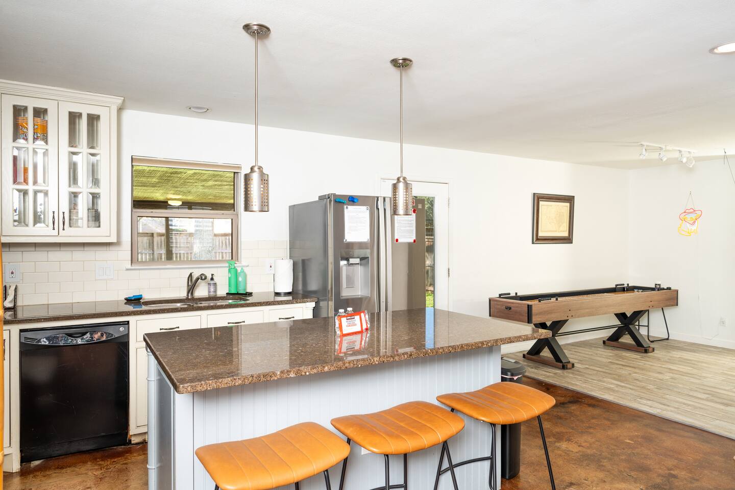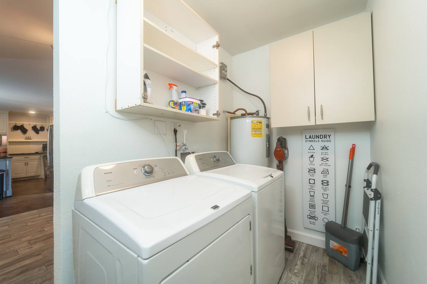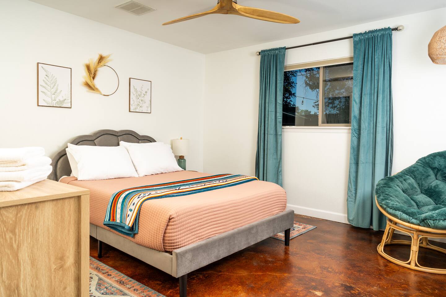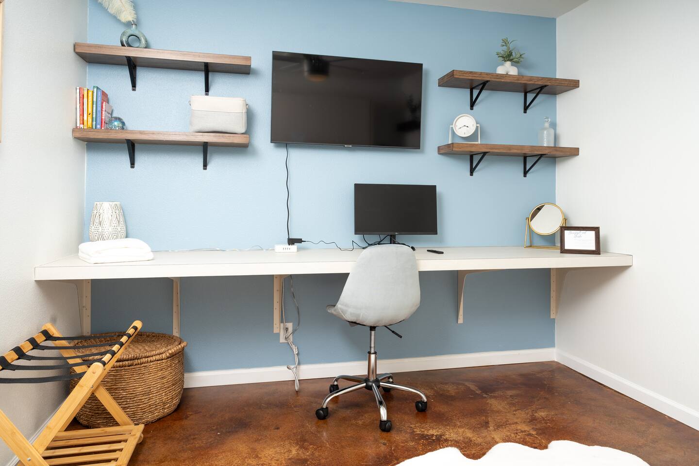 We are ideally centralized in Austin; providing you immediate access to the Domain and Arboretum. They are both a shoppers paradise, and full of dining and nightlife. The home has convenient access to major highways to quickly experience the many sides of Austin. We are 3 min to Austin FC & a short 7-10 min drive south to Downtown, University of Texas, & countless music venues. For Formula 1 lovers, you're a 20 minute Uber to the public transit pickups that you MUST use. To the west and north, quickly find yourself at Lake Travis, Cedar Park Center, Round Rock Express, or Kalahari Resort. Our game room boasts a shuffleboard, ring & hook game, as well as additional table games for you entertainment. Kick back for a movie on a 60" TV and a very comfortable sectional couch. The patio is large with relaxing outdoor living and dining, as well as a steamy hot tub to soak in and destress. The backyard has a built in fire pit and a many large oak trees to provide a peaceful ambiance full of chirping birds and active squirrels year round. The backyard is massive and perfect for your pets to run and enjoy the outdoors. Our space is homey and comfortably designed, with attention to detail. You'll find a fully stocked kitchen and bathrooms complete with all the day-to-day living essentials you may need. You'll sleep great when our memory foam, hybrid mattresses usher you into a deep sleep. The large master is beautifully decorated and set up with a relaxing ambiance. It has a convenient in-suite bath. A second bedroom has been designed with a spacious and well equipped workstation on a stylish wall-to-wall desk for accommodating remote work (laptop connections and monitor). It is also designed for function, as it's equipped with a Murphy bed, providing an open space for activities if needed. The third bedroom will make you feel at home. It is our "Longhorn Room", capturing a vibe of Austin.