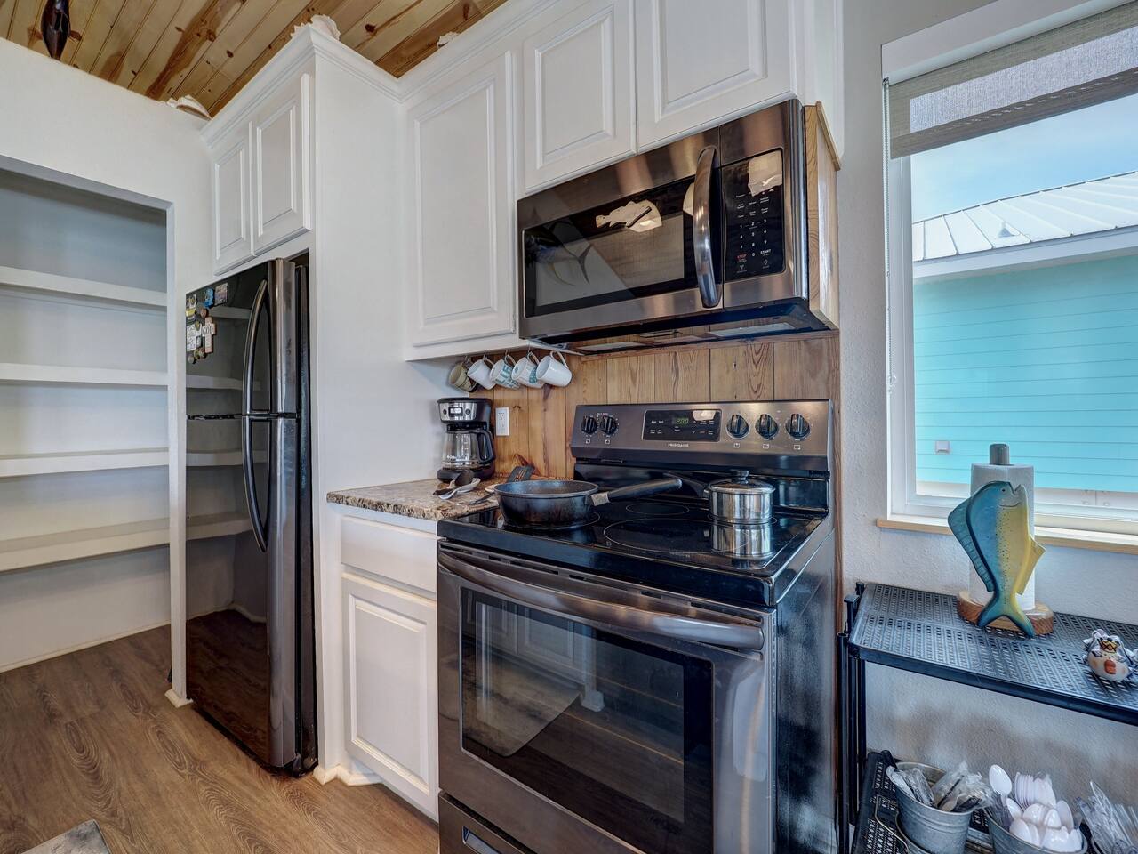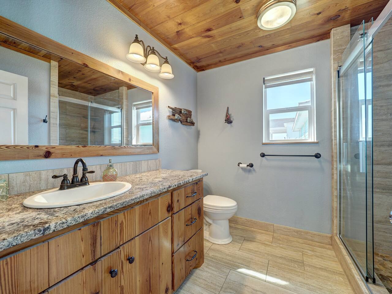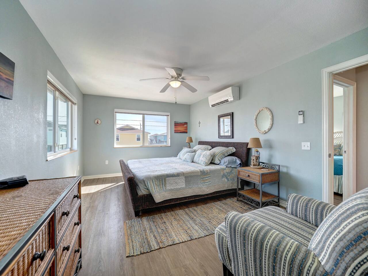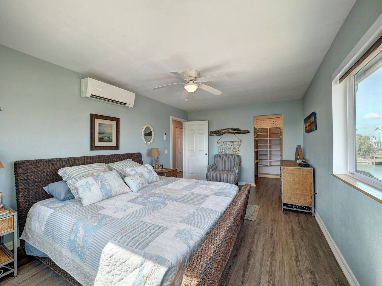 You’ll love the waterfront lifestyle at our beautiful canal-front home. Spend your mornings and evenings on the multiple sky decks overlooking the water, watching wildlife pass by and enjoying peaceful coastal views. For fishing lovers and families alike, the property features a private fishing dock and fish-cleaning station, making it easy for you and the kids to enjoy a day on the water and bring your catch straight back to the house. The outdoor living space is designed for connection and relaxation, with a fully equipped outdoor kitchen, barbecue grill, and plenty of comfortable seating for gathering with friends and family. It’s the perfect setting for sunset dinners, storytelling, and memorable group moments. Downstairs The first level includes a private bedroom with a queen bed and a separate full bathroom, offering a comfortable and convenient space for guests who prefer to avoid stairs. Upstairs Living Area Upstairs you’ll find a spacious living room with vaulted ceilings and an open-concept kitchen, designed for entertaining and spending time together. The open layout allows everyone to stay connected whether cooking, relaxing, or planning the next day’s adventures. Bedrooms The primary bedroom features a king-size bed, large closet, and cozy reading chair, creating a relaxing retreat after a day on the water. The second upstairs bedroom includes two full-size beds, making it perfect for families with kids or groups traveling together. Additional Sleeping Space The large living room also features a queen-size Murphy bed with a comfortable memory foam mattress, providing additional sleeping space while keeping the room open and spacious during the day. Whether you're here to fish, relax on the decks, cook outside, or enjoy time with family and friends, this waterfront home is designed to help you slow down, reconnect, and experience the best of coastal living.