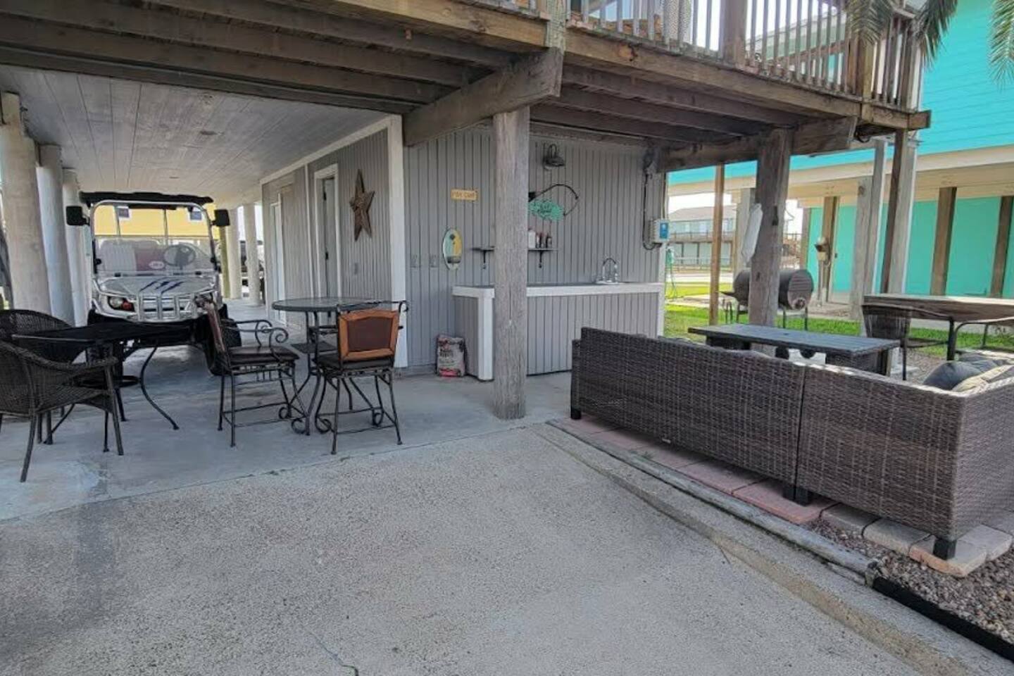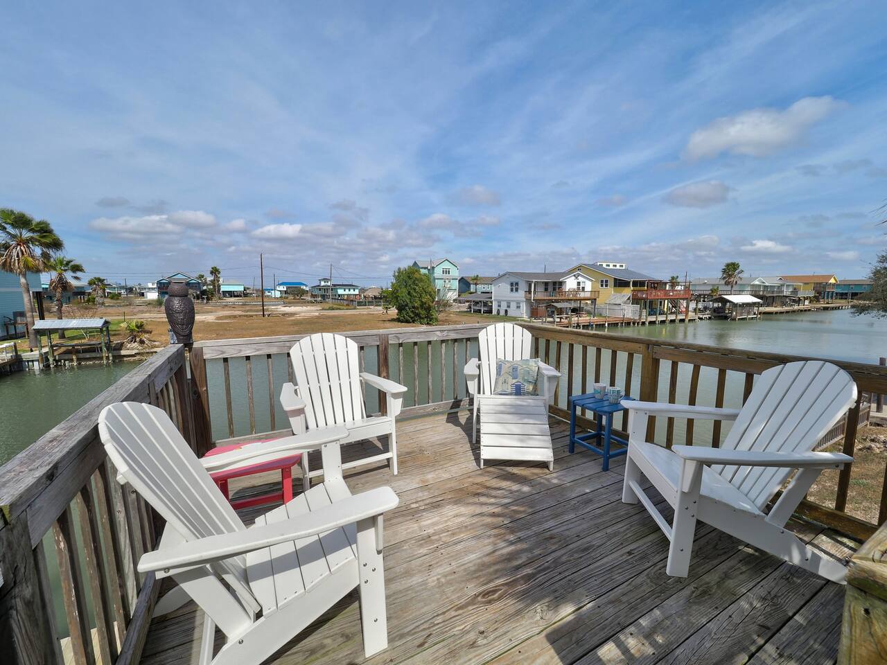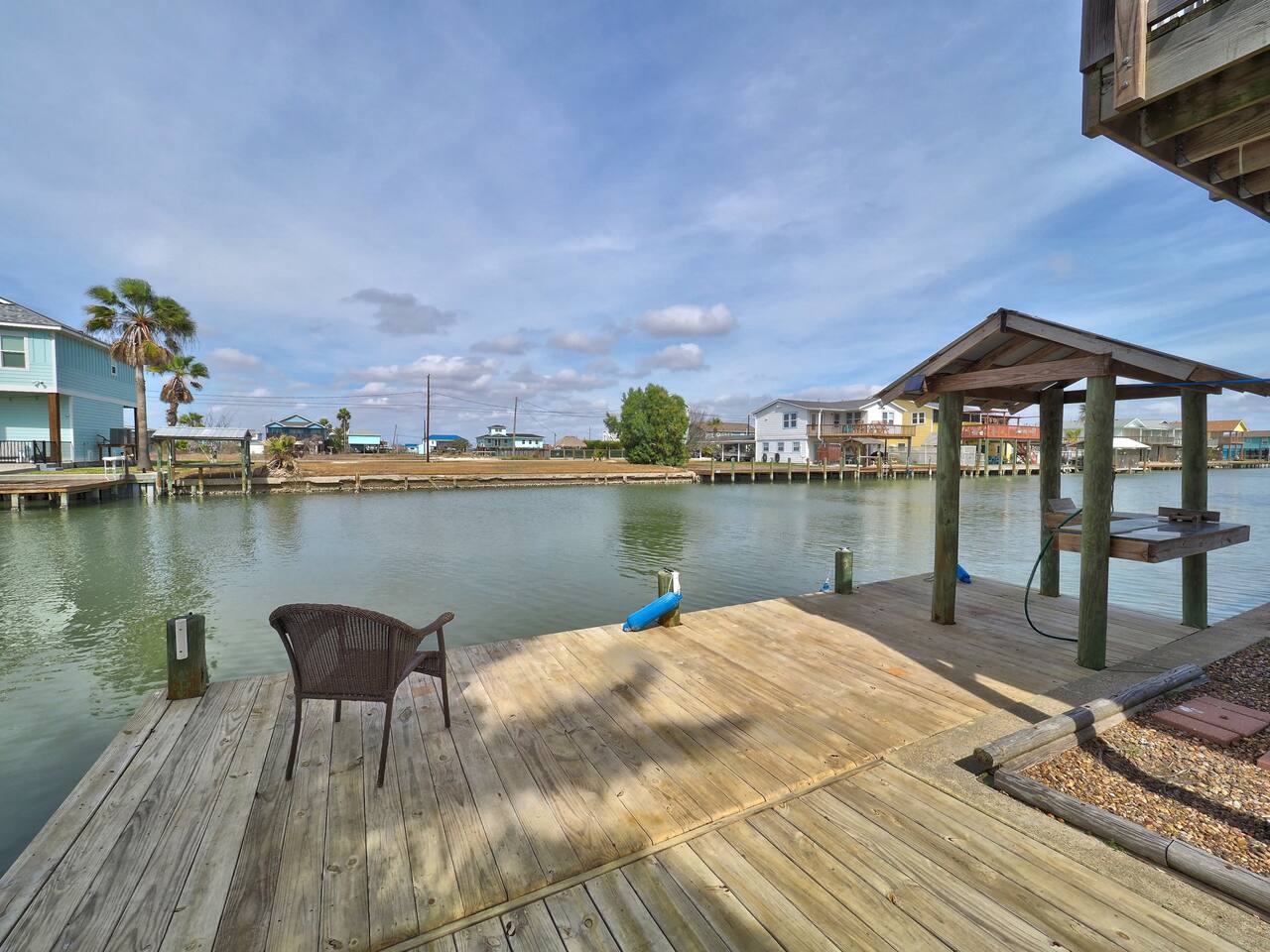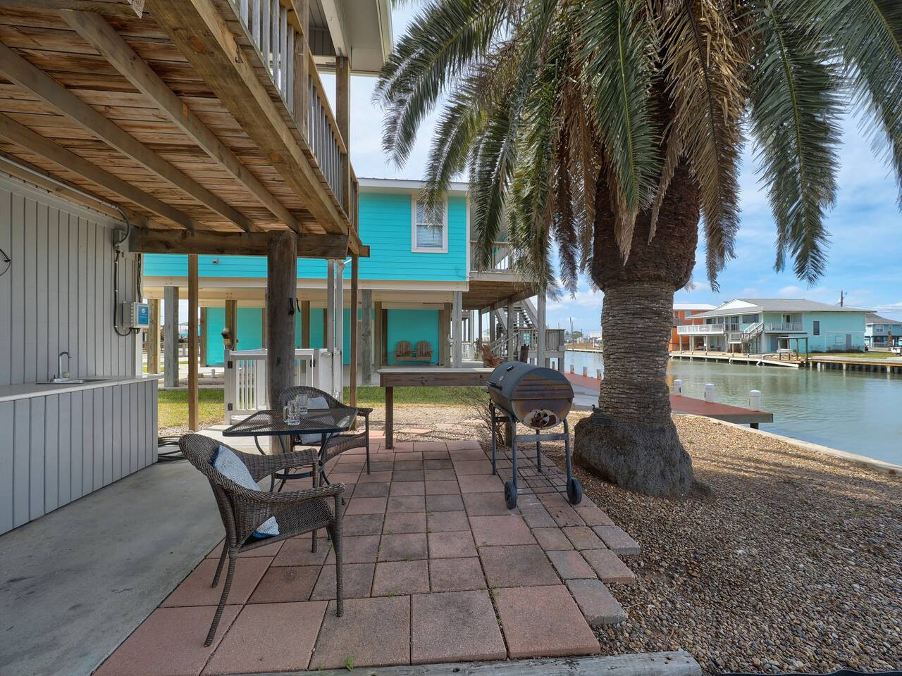 Your Rockport adventure starts here! This canal-front retreat features a private fishing dock with fish cleaning station, multiple sky decks for incredible sunsets and wildlife views. Enjoy a golf cart for cruising and an outdoor kitchen & living area with BBQ for relaxed waterfront meals. Pet-friendly and perfect for families, couples, or friends looking to fish, boat, and explore Rockport’s beaches. Enjoy cool coastal breezes, peaceful mornings on the water, and laid-back coastal living.